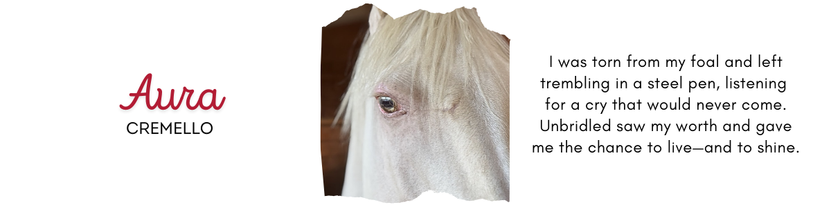 If you met me today, you would see a proud cremello mare with watchful gold eyes and a body still learning to soften. You would see me take a carrot from an open palm. You might even see me lean—just slightly—into a gentle scratch along my cheek.