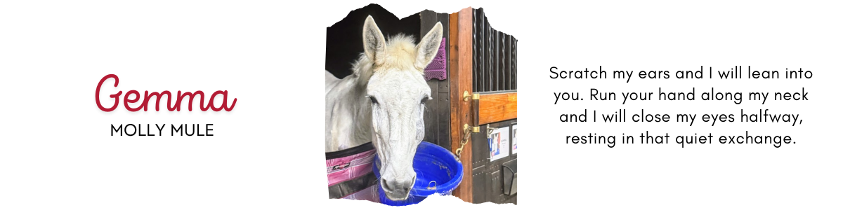 And then Unbridled reached out—not as a transaction, but as an opening of the heart. There was already a white mule waiting for me there. Arnie, the first. Molly, who followed. A small sanctuary within a sanctuary—an understanding of our kind. A place where being steady is not mistaken for being invisible.